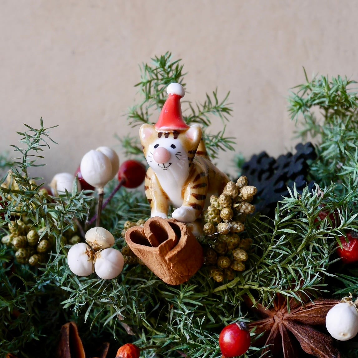 ちいさなネコとちいさなプレゼントのセットです。